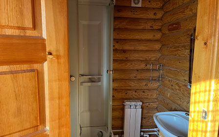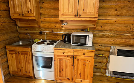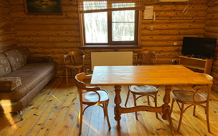 Уютный домик из сруба оборудованный всем необходимым для комфортного проживания шестерых человек.