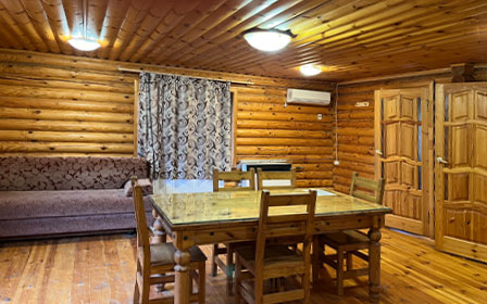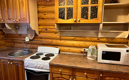 Уютный домик из сруба оборудованный всем необходимым для комфортного проживания шестерых человек.